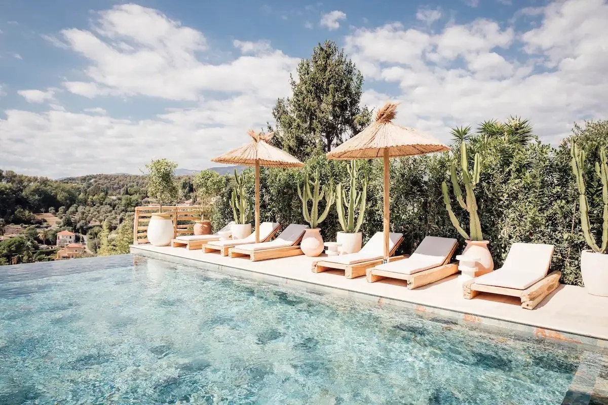 Capturing soaring views of St. Paul de Vence, Cap d’Antibes, and the Mediterranean Sea, this cascading, Provence-style private estate celebrates its prime location with numerous fresco dining and entertaining spaces. Start each morning with tea in the garden. Spend sunny afternoons enjoying the view from the saltwater infinity pool. Later, take in the incredible ocean sunset from the terrace.